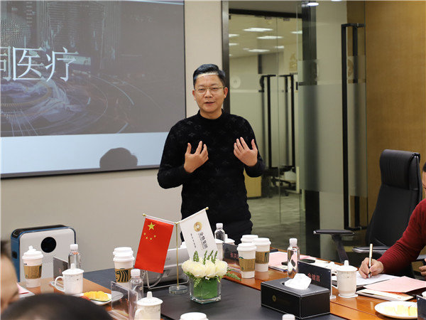 上海金恪集团董事长兼CEO王建峰首先对前来考察的各位领导表示了热烈欢迎,随后介绍集团发展历程和业务布局。经过多年累积发展,金恪汇聚了国内外各行业优秀人才,并逐步培育出资源整合与产业运营两大核心竞争力。王建峰表示,集团通过搭建开放平台,遴选精品项目与多方展开战略合作,最终实现产业价值提升。希望金恪集团能与鸿艺集团、瑞信海德集团、金酮医疗互通有无,共建未来。